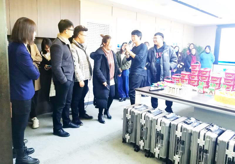 First, Rita sang a Spanish song to open the show. The atmosphere soon became lively, and everyone followed the rhythm. After that, the representatives of the business department, e-commerce department, and after-sales department all sang songs to to express their happiness.
